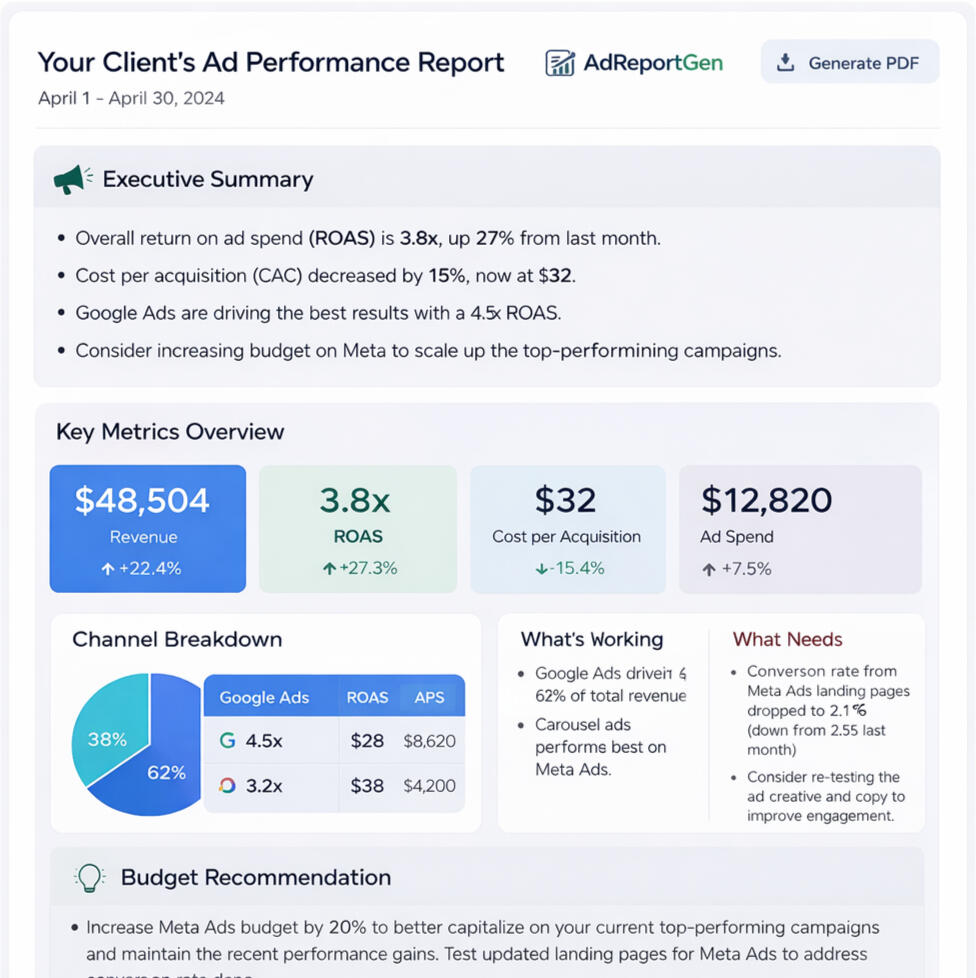 You rewrite explanations like “ROAS dipped but performance is stable”